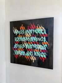 ‘Kings and Fools, Fools and Kings’ this text swims out of a myriad of shapes whose colour inverts as it nears the proximity of the words.