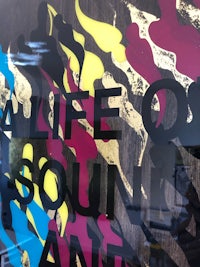 Vinyl, gold leaf and resin on board