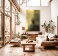 This piece has a highly reflective golden surface, it changes through out the day, interacting with the light in its environment.